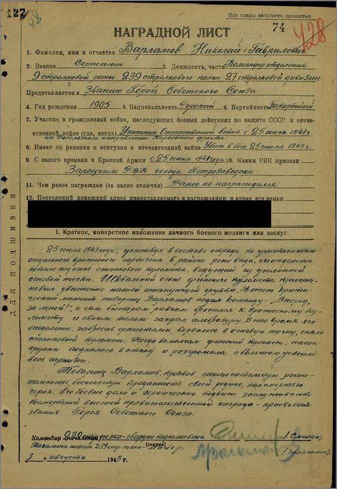 Родился 6 января 1907 года в г. Петрозаводск. Погиб в бою 25 июля 1943 года, похоронен на 59-м километре тракта Кочкома – Реболы. Указ Президиума Верховного Совета СССР от 25.09.1943, посмертно