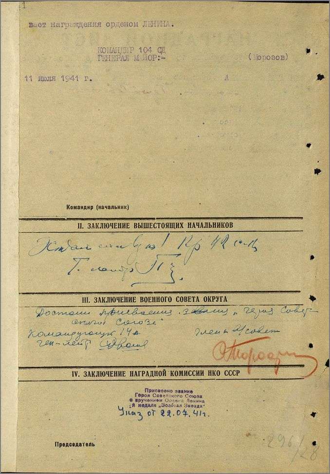 Указ Президиума Верховного Совета СССР от 22.07.1941, посмертно.