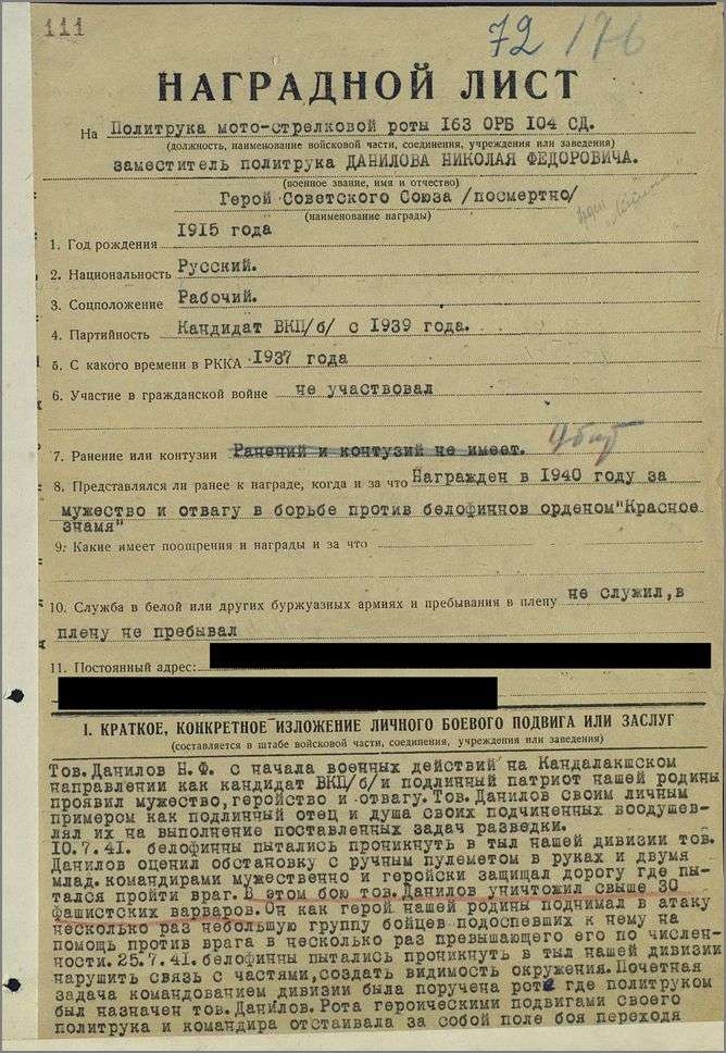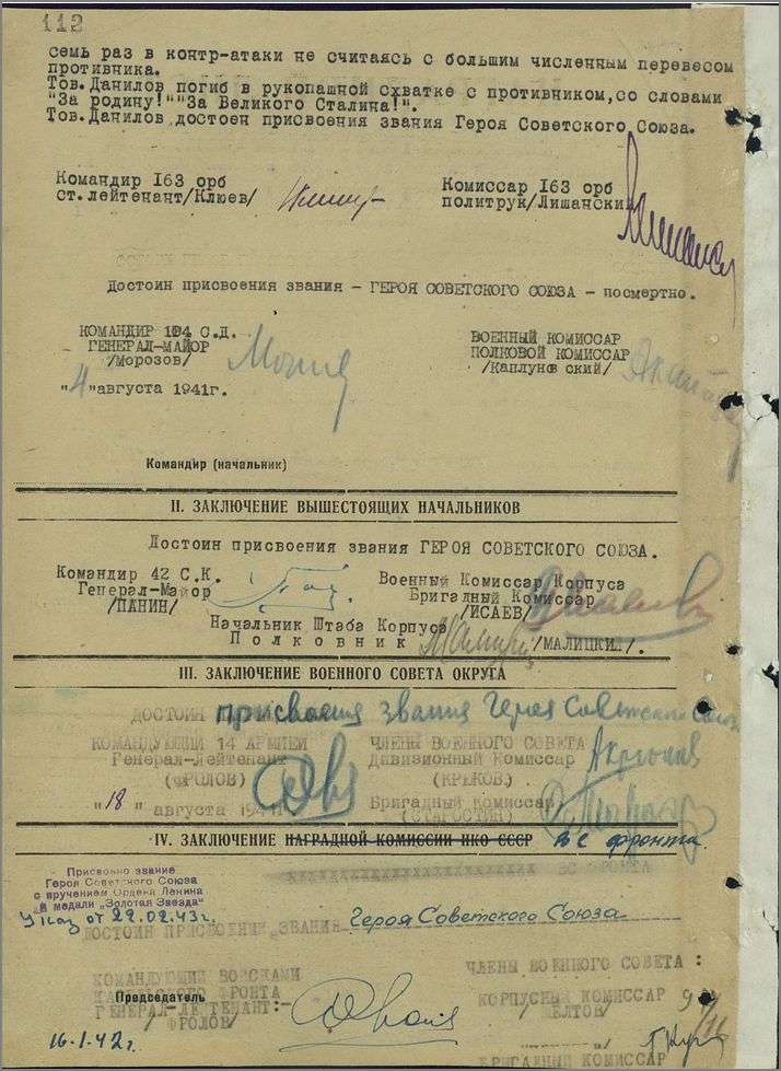 Указ Президиума Верховного Совета СССР от 22.02.1943, посмертно.