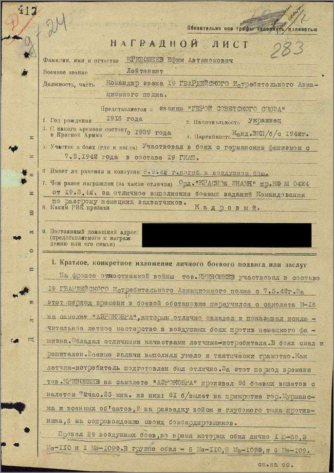 Указ Президиума Верховного Совета СССР от 22.02.1943. посмертно.
