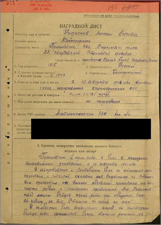 Указ Президиума Верховного Совета СССР от 22.02.1943, посмертно.